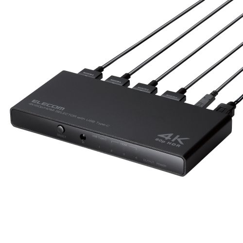 HDMI切替器/4K60Hz対応/4ポート/3入力(HDMI)+1入力(USB Type-C)・1出力(HDMI)/専用リモコン付/専用ACアダプター付き/ブラック