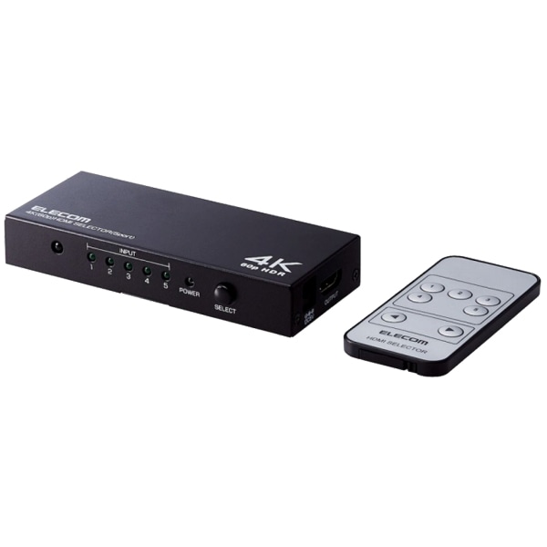 HDMI切替器/4K60P対応/5ポート/5入力1出力/専用リモコン付/ブラック