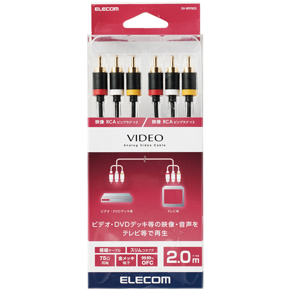| 商品名 | AVケーブル/TV-ビデオデッキ用/RCAピンプラグ×3-RCAピンプラグ×3/ブラック/2.0m |