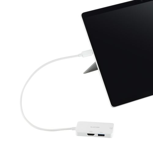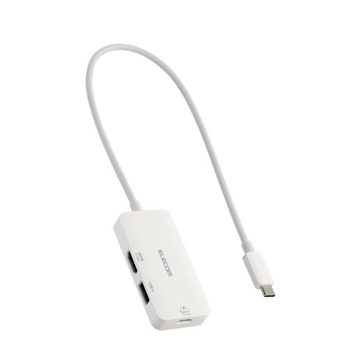 ■USB Type-Cプラグでパソコンに接続し、パソコンを充電しながらUSB 5Gbps(USB3.2(Gen1))機器やHDMIケーブルを接続できるドッキングステーションです。 ■対応OS:Windows 11/10、macOS 14/13/12、iPadOS 17/16 ■コネクター形状:USB Type-Cブラグ<USB 5Gbps(USB3.2(Gen1))> ■USBポート(ダウンストリーム):1:USB Type-Cポート<USB 5Gbps(USB3.2(Gen1))>×1 ※充電/データ通信用 ■USBポート(ダウンストリーム):充電時供給電力:充電用USB Power Deliveryポート100W ※製品本体にて8Wを消費しますので、実際の出力は最大92Wとなります。 ■USBポート(ダウンストリーム):データ通信時供給電力:7.5W(5V/1.5A)、転送速度:最大<USB 5Gbps(USB3.2(Gen1))> ■USBポート(ダウンストリーム):2:USB-Aポート<USB 5Gbps(USB3.2(Gen1))>×1、供給電力:7.5W(5V/1.5A) ■映像出力ポート(ダウンストリーム):HDMIポート×1<対応解像度:最大4K/60Hz> ■電源方式:バスパワー ■ケーブル長:約30cm ※コネクター含まず ■カラー:ホワイト ■外形寸法:幅約72mm×奥行約34mm×高さ約11.5mm ※ケーブル含まず ■動作環境:温度5℃~40℃、湿度30%~80% ※結露なきこと ■保証期間:1年間