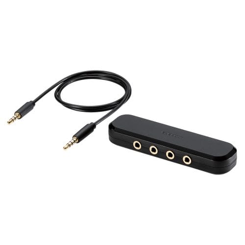 ■1台の端末の音楽を3人同時に楽しむことや、複数の端末の音楽をミックスすることができます。 ■4極対応コネクタのため、3人同時に通話をすることができます。 ■各ケーブルを同じ方向に配線できるデザインなので、すっきり配線できます。 ■サビや信号劣化の心配がない金メッキピンを使用しています。 ■スマートフォンやゲーム機などの端末との接続用4極3.5φミニプラグケーブルを付属しています。 ■対応確認済みのイヤフォン及びヘッドフォン型番:EHP-CS3520MBK、HS-EP15TBK、EHP-MC3520BK、EHP-CN300MWH、EHP-CS3520MWH ※ご利用のイヤフォン、ヘッドフォンの組み合わせによっては、ノイズが発生する可能性があります。 ■対応機種:3.5φミニプラグを搭載したヘッドフォン・イヤフォン及び、3.5φミニプラグを搭載したスマートフォン・ゲーム機等 ■インターフェイス:3.5φ4極ミニジャック×4 ※どのジャックでも音声入力及び出力端子としてご利用いただけます。 ■プラグメッキ仕様:金メッキ ■ケーブル長:約0.5m (付属ケーブル)※コネクター含まず ■ケーブル太さ:2.6mm ■カラー:ブラック