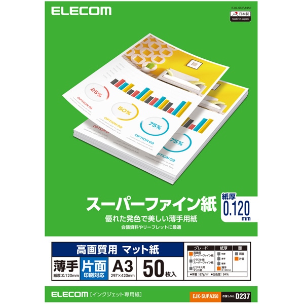 | 商品名 | スーパーファイン紙/高画質用/薄手/片面/A3/50枚 |
