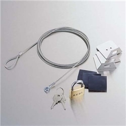 ■3台までの機器をまとめてロックします。 ■専用パーツをパソコン、プリンター、液晶モニターなどに貼り付け、ワイヤーを通し南京錠でロックするので、対応機種を選びません。 ■南京錠を使ってロックするタイプです。 ■ワイヤー本体はカバーに巻かれ、デスクなどにキズがつきません。 ■ロック方法:取付パーツを両面テープでモニター・CPU・プリンターに設置し、取付パーツの通し口にワイヤーを通します。ワイヤーはデスク・ラックなどに巻きつけ、あとは南京錠でワイヤーをロックすれば完了です。 ■複数の異なる鍵全てを、個別に管理。パソコンそれぞれに、異なる鍵を取り付け、個別に鍵を管理することができます。 ■※複数注文の場合は、注文数によって同じ鍵番号が含まれることがあります。 ■製品種類:南京錠+ワイヤー ■対応スロットサイズ:その他:接着 ■通常、マスター、統一、その他:通常 ■セット内容:南京錠、カギ2本、取付パーツ×3個、両面シール×3個 ■寸法:南京錠:幅30×奥行12.5×高さ48.5mm、取付パーツ:幅40×奥行40×高さ20mm ■ワイヤー長さ:1.7m ■ワイヤー太さ:2.2mm ■ワイヤー材質:スチール+ソフトPVCコーティング ■ワイヤー色:シルバー