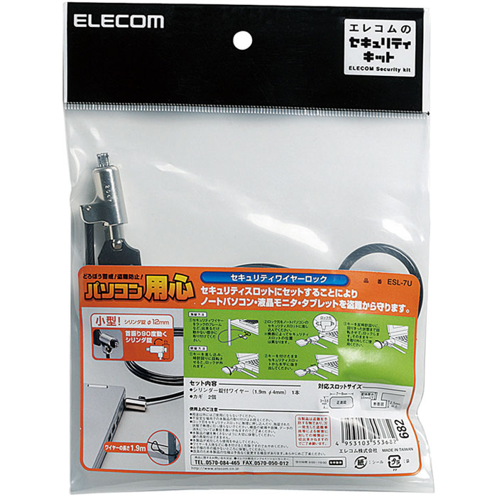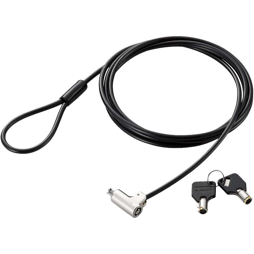 ■小型でかさばらないシリンダー錠 ■90度の首振り機能付 ■傷つけにくいコーティング済ワイヤー付 ■ロック方法:専用スロットにセキュリティワイヤーロックを差込んでキーを回して取り外すだけで完了。解除はキーを差込み回転させればOKです。 ■対応スロットサイズ3×7mm※スロットサイズが対応していても、機種によってスロット内部の奥行きが対応しない場合がございます。 ■使用環境に応じて豊富な鍵種をご用意しています。 ■製品種類:シリンダー錠一体型セキュリティワイヤー ■対応スロットサイズ:3×7mmスロット(縦横式) ■その他:※スロットサイズが対応していても、機種によってスロット内部の奥行が対応しない場合がございます。 ■通常、マスター、統一、その他:通常 ■シリンダー径:12mm ■セット内容:シリンダー錠付きワイヤー(パッド付)、カギ×2本 ■寸法:ヘッド部:幅25.7×奥行12××20.5mm(シリンダーΦ12mm) ■材質:ヘッド部:亜鉛合金 ■ワイヤー長さ:1.9m ■ワイヤー太さ:4.0mm ■ワイヤー材質:スチール+ソフトPVCコーティング ■ワイヤー色:ブラック