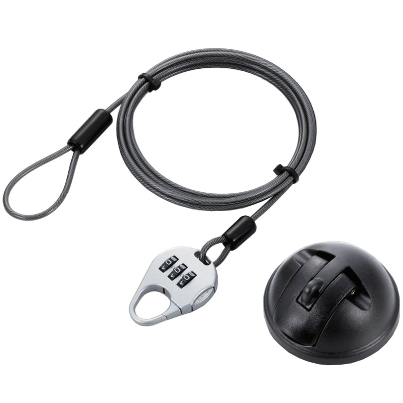 ■セキュリティスロットのないタブレット・薄型ノートPCを盗難から守ります。強力な吸盤で機器に固定します。 ■タブレット・薄型ノートPCに取り付けた吸盤に、ダイヤル錠でロックすることができます。 ■本体が丸く、握りづらいので、容易に取り外しできません。 ■取付面をきれいにしてください。表面にシボなどザラつきがある場所には、取り付けができません。 ■強力な吸盤で取り付けますが、時間の経過とともに緩みが生じる場合がございます。1ヶ月を目安に、付け直しいただくことを推奨いたします。 ■吸盤ですので、使用状況によっては外れる場合がございます。簡易的なセキュリティとしてご利用お願い致します。 ■製品種類:吸盤セキュリティワイヤーロック ■対応スロットサイズ:タブレット、PC ■通常、マスター、統一、その他:通常 ■セット内容:吸盤×1個、ダイヤル錠付きワイヤー×1個 ■材質:ダイヤル錠:亜鉛合金、吸盤:ゴム ■ワイヤー長さ:1.8m ■ワイヤー太さ:3mm ■ワイヤー材質:スチール+ソフトPVCコーティング ■ワイヤー色:ブラック ■重量:本体:48g、セキュリティワイヤー:68g