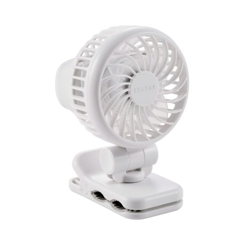 ■さまざまな場所に取り付けて使える、幅広のクリップ付き。日傘や車内、キッチンカウンターやオフィスのパーティションなど多様な場所で活躍します。 ■ファンは360度の角度調節が可能。好みの角度・位置で使えて便利です。 ■卓上ファンとしても使えます。外出時は身近なものに取り付けて使えて、屋内では机に置いて快適に。シーンに合わせた使い方が魅力です。 ■好みに合わせて3段階(弱・中・強)の風量調節ができます。 ■電源ON/OFFはボタンを1秒間長押し。バッグの中での誤作動を防ぐので、持ち運びの際も安心です。 ■電源:充電式リチウムイオン電池 ■連続動作時間:約1.8時間~約6.5時間(満充電時) ※風量の強弱によって変化します。 ■充電時間:約2.8時間 ■定格入力:5V/1.5A ※本製品を充電しながら使用する際は、1.5A以上の出力があるAC充電器をご使用ください。 ■消費電力:3W ■バッテリー容量:1400mAh ■風量調節:3段階(弱・中・強) ■外形寸法:幅約68mm×奥行約50mm×高さ約102mm ■質量:約115g ※本体のみ ■カラー:ホワイト ■付属品:給電用USB-A - USB Type-Cケーブル×1本(約80cm ※コネクター部含まず) ■保証期間:1年間