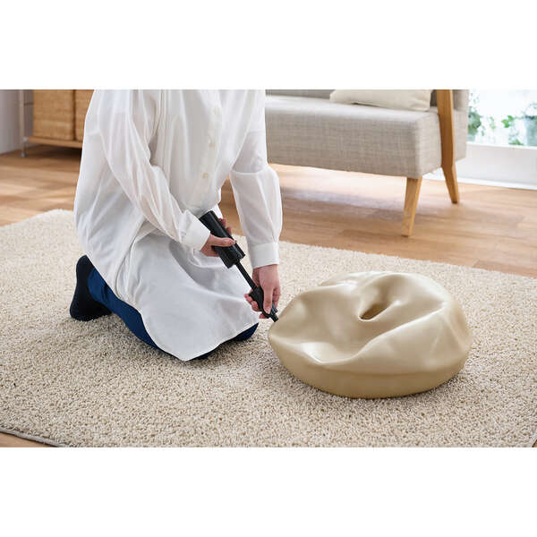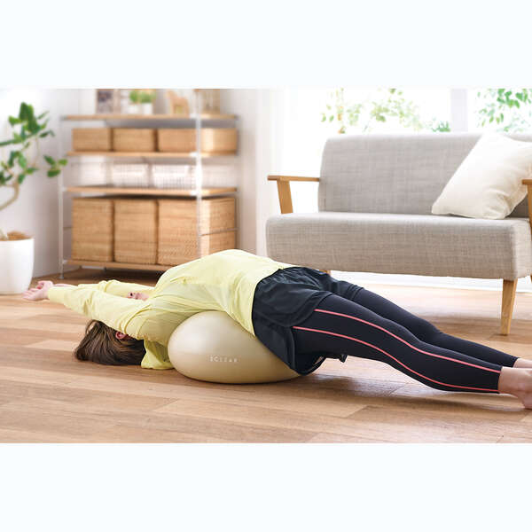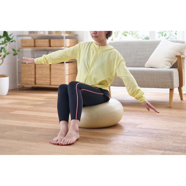 ■座るだけでいつでも体幹トレーニングができるエクリア スポーツ“ドーナツ型バランスボール”です。 ■簡単なトレーニングから応用トレーニングやストレッチまで、幅広い運動ができます。 ■ドーナツ形状で安定した座り心地です。 ■破裂を防止するアンチバースト仕様です。 ■転がらないので、部屋で邪魔になりません。 ■部屋のインテリアに馴染むカラーリングを採用しています。 ■耐荷重120kgの高耐久タイプです。 ■空気を入れる専用ポンプ付きです。 ■スペアの空気栓が付属しています。 ■推奨身長約160~180cmのLサイズです。 ■セット内容:ドーナツ型バランスボール、ハンドポンプ、スペア栓 ■カラー:アイボリー ■材質:バランスボール:PVC、PP/ハンドポンプ:PP、合成ゴム ■サイズ:直径約50×高さ28cm ■耐荷重:120kg