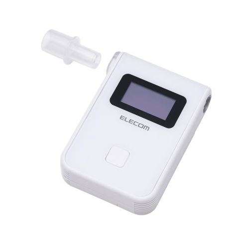 ■改正道路交通法施行規則に対応した、持ち運びに便利な小型アルコールチェッカーです。 ■※国家公安委員会が定めるアルコール検知器です。(呼気中のアルコールを検知し、その有無又はその濃度を警告音、警告灯、数値等により示す機能を有する機器) ■製品タイプ:マウスピース式 ■アルコール測定センサー:燃料電池センサー ■呼気流量検知センサー:圧力式 ■表示装置:ディスプレイ(OLED)/LED(赤・青・緑) ■通信方式:Bluetooth LE ■電源:単4形アルカリ乾電池×1本 ■センサー寿命:使用期限の範囲内で購入後1年経過または、センサー使用回数が2000回以上になった場合(どちらか早い方) ※使用期限:製造より2.5年 ■呼気中アルコール濃度測定範囲:0~2.500mg/L ■最小表示単位:0.001mg/L ■サイズ:幅約50.0mm×奥行約68.3.0mm×高さ約16.5mm(マウスピース除く) ■質量:約55g(電池含む) ■カラー:ホワイト ■内容物:本体×1、専用マウスピース×5、ストラップ×1、収納袋×1 ■保証期間:使用期限の範囲内で購入後1年間または、2000回測定(「OVER」表示)するまで(どちらか早い方) ※使用期限:製造より2.5年