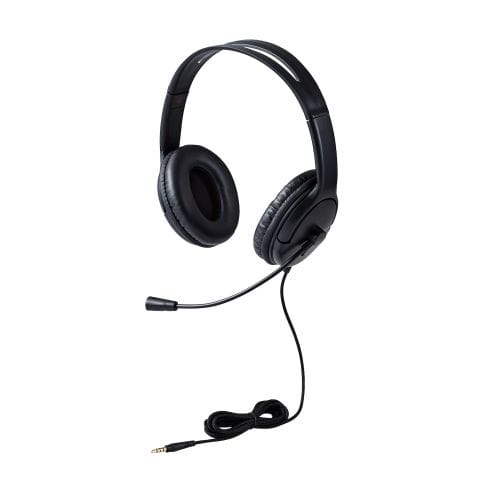 ■Web会議やビデオ通話、オンラインゲームでの音声チャットにぴったりのヘッドセットです。 ■対応機種:φ3.5mm4極ミニプラグ(CTIA規格準拠)に対応したスマートフォン・タブレット・ノートパソコン ※すべてのスマートフォン・タブレット・ノートパソコンでの動作を保証するものではありません。 ■インターフェイス:φ3.5mm4極ミニプラグ ■ケーブル長:約1.8m ■本体カラー:ブラック ■重量:約130g(ケーブル含まず) ■外形寸法:幅約150mm×奥行約75mm×高さ約200mm(ケーブル含まず) ■装着方式:大型オーバーヘッドタイプ ■ヘッドホン・スピーカー方式:ダイナミック型(ステレオ) ■ヘッドホン・ドライバーユニット:40mm ■ヘッドホン・最大許容入力:50mW ■ヘッドホン・インピーダンス:32Ω ■ヘッドホン・周波数帯域:20~20000Hz ■ヘッドホン・ボリューム調整:有 ■マイク方式:エレクトレットコンデンサー方式 ■マイクアーム長さ:約165mm(回転軸中心からマイク穴中心までの長さ) ■マイク・ミュート機能:有 ■マイク・指向性:単一指向性 ■マイク・入力感度:-42dB ±3dB ■マイク・周波数帯域:100Hz~10000Hz ■付属品:ウインドスクリーン、ポーチ ■保証期間:1年間