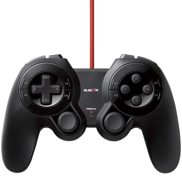 ■十字ボタン、アナログスティック2本、24ボタンを搭載した“DUX”MMOゲームパッドです。 ■各種操作をプログラムしたとおりに再生することができるハードウェアマクロ機能を搭載しています。 ■ボタン数:24ボタン ■振動機能:あり(モーター×2) ■連射機能:あり(任意の連射速度に設定可能) ■動作モード:アナログモード ■アナログスティック:2本(アルプス電気社製) ■マクロ機能:あり ■ボタン配置切替機能(リマップ機能):あり(ソフトで設定) ■POV(ハットスイッチ):あり ■軸数:4軸(X軸/Y軸/Z軸/Z回転) ■対応機種:USBインターフェイスを装備したWindowsパソコン ■対応OS:Windows10、Windows 8.1、Windows 7、Windows Vista ※各OSの最新バージョンへのアップデートや、サービスパックのインストールが必要になる場合があります。 ■インターフェイス:USB ■コネクタ形状:USBタイプAオス ■ケーブル長:1.8m ■付属品:ユーザーズマニュアル×1部 ■本体カラー:ブラック ■保証期間:6カ月間 ■外形寸法(本体):幅162.6mm×奥行105.1mm× 高さ58.0mm ※ケーブルを除く ■質量(本体):約229g(ケーブルを含む) ■電源(本体):USBバスパワー ■電源電圧(本体):5V