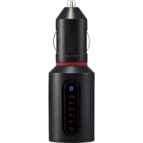 ■スマートフォンやタブレットの音楽を車の中でワイヤレスで楽しめるBluetoothFMトランスミッターです。 ■音楽だけでなく、ナビアプリや動画コンテンツの音声をFMカーステレオで聴くことができます。 ■使用電源:アクセサリソケット ■使用温度範囲:0~40℃(結露なきこと) ■保存温度範囲:-20~45℃(結露なきこと) ■定格入力電圧:DC12/24V ■充電端子:USB Type-A メス ■定格出力電圧:DC5V ■定格出力電流:2.4A ■外形寸法:Φ30×95mm(突起部除く) ■質量:約28g ■対応ソケットサイズ:Φ20.8~22.0mm ■送信周波数:88.1/88.3/88.5/88.7MHz ■Bluetoothバージョン:ver. 4.2 ■変調方式:GFSK方式 (Gaussian filtered frequency shift keying) ■対応プロファイル:A2DP ■対応コーデック:SBC ■対応コンテンツ保護規格:SCMS-T ■Bluetooth通信距離:Class 2(最大約10m(理論値)) ■マルチペアリング:8台 ■BASSブースト:なし ■カラー:ブラック ■発光色:赤・青 ■認証:JAAMA認定ELPマーク取得(微弱無線設備適合品) 技術基準適合証明 Bluetooth認証 ■保証期間:1年 ■使用可能地域:日本国内 ■付属品:取扱説明書 ■その他:ラストメモリ機能
