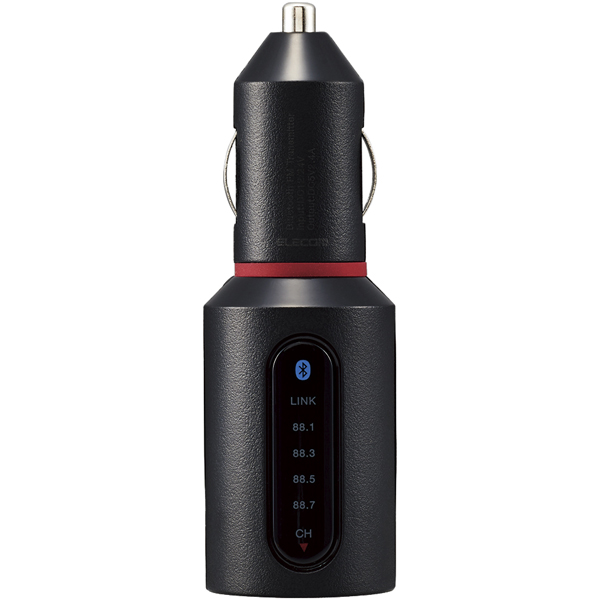 ■スマートフォンやタブレットの音楽を車の中でワイヤレスで楽しめるBluetoothFMトランスミッターです。 ■音楽だけでなく、ナビアプリや動画コンテンツの音声をFMカーステレオで聴くことができます。 ■使用電源:アクセサリソケット ■使用温度範囲:0~40℃(結露なきこと) ■保存温度範囲:-20~45℃(結露なきこと) ■定格入力電圧:DC12/24V ■充電端子:USB Type-A メス 2port ■定格出力電圧:DC5V ■定格出力電流:2.4A ■外形寸法:Φ30×95mm(突起部除く) ■質量:約29g ■対応ソケットサイズ:Φ20.8~22.0mm ■送信周波数:88.1/88.3/88.5/88.7MHz ■Bluetoothバージョン:ver. 4.2 ■変調方式:GFSK方式 (Gaussian filtered frequency shift keying) ■対応プロファイル:A2DP ■対応コーデック:SBC ■対応コンテンツ保護規格:SCMS-T ■Bluetooth通信距離:Class 2(最大約10m(理論値)) ■マルチペアリング:8台 ■BASSブースト:なし ■カラー:ブラック ■発光色:赤・青 ■認証:JAAMA認定ELPマーク取得(微弱無線設備適合品) 技術基準適合証明 Bluetooth認証 ■保証期間:1年 ■使用可能地域:日本国内 ■付属品:取扱説明書 ■その他:ラストメモリ機能