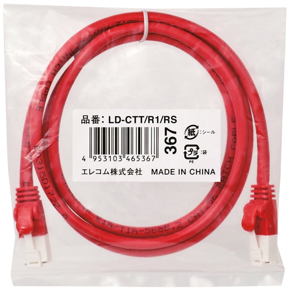 | 商品名 | RoHS指令準拠LANケーブル/CAT5E/爪折れ防止/1m/レッド/簡易パッケージ |