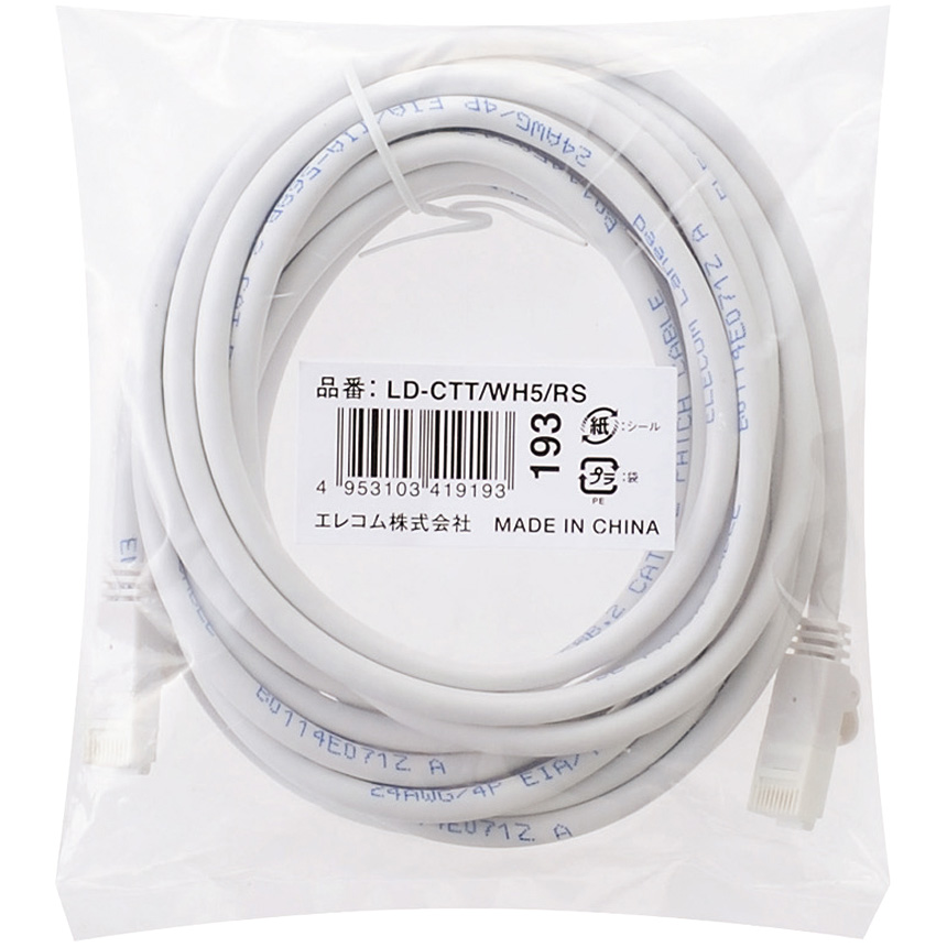 | 商品名 | EU RoHS指令準拠 ツメ折れ防止LANケーブル(Cat5E)/5.0m/簡易パッケージ仕様/ホワイト |