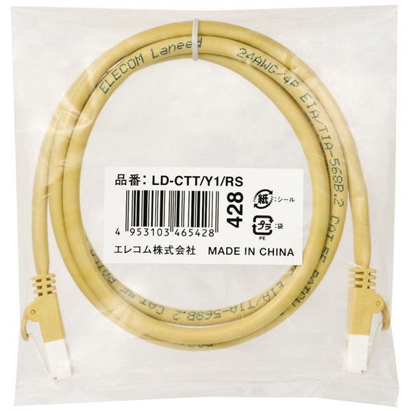 | 商品名 | RoHS指令準拠LANケーブル/CAT5E/爪折れ防止/1m/イエロー/簡易パッケージ |