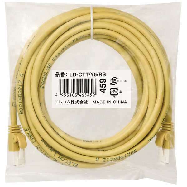 | 商品名 | RoHS指令準拠LANケーブル/CAT5E/爪折れ防止/5m/イエロー/簡易パッケージ |