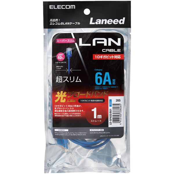 | 商品名 | LANケーブル/CAT6A/スーパースリム/1m/ブルー |