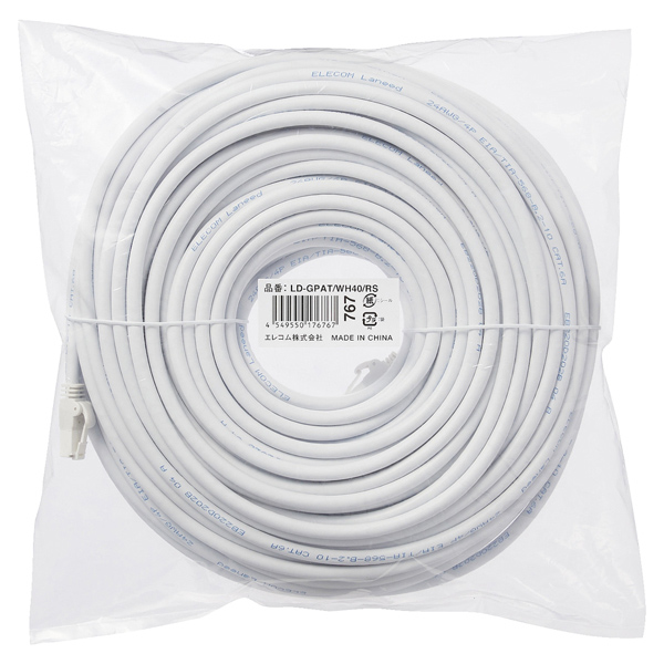| 商品名 | LANケーブル/CAT6A対応/EU RoHS指令準拠/爪折れ防止/簡易パッケージ仕様/40m/ヨリ線/ホワイト |