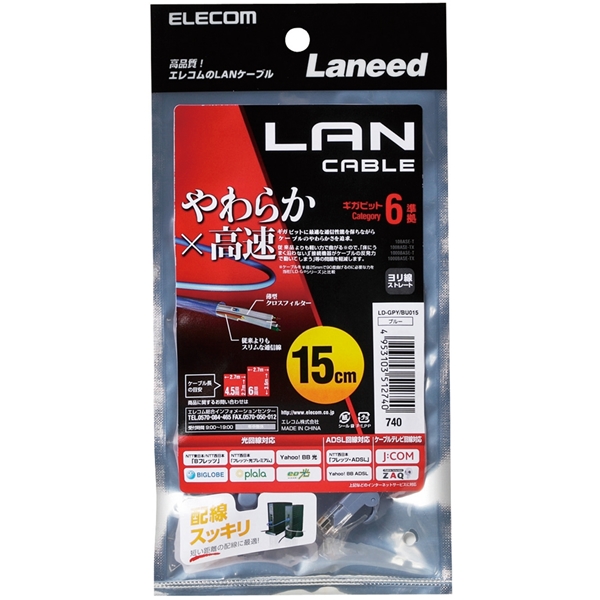 | 商品名 | やわらかLANケーブル/Cat6/0.15m/ブルー |