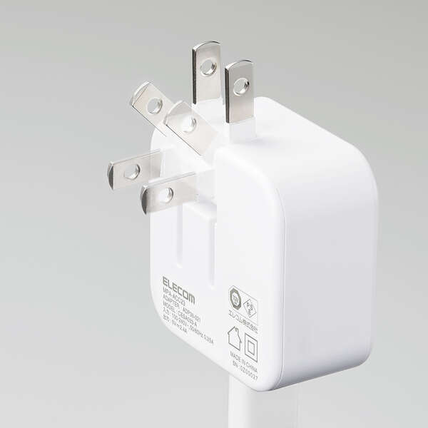 ■家庭用コンセントからスマートフォンやタブレット等を充電、給電できるAC充電器です。 ■ケーブルクリップが付属し、煩雑になりがちなケーブルを本体に留めておけます。 ■スマートフォンやタブレットに付属もしくは対応する充電用USBケーブルを使用して充電可能です。 ■最大出力12W(5V/2.4A)の高出力タイプです。 ■接続された機器を自動検知し、最適電流で充電できるおまかせ充電に対応しています。 ■対応機種:USB Type-Aポートから5W(5V/2.4A)までの出力で充電、使用可能な機器 ■コネクタ形状:USB Type-A メス×1 ■定格入力電圧:AC100-240V 50/60Hz ■定格入力電流:0.35A ■定格出力電力:12W ■定格出力電圧:5V ■定格出力電流:2.4A ■外形寸法:約 幅50mm×厚み26mm×高さ50mm ※ACプラグ収納時 ■重量:約55g ■カラー:ホワイトフェイス ■コンセントプラグ仕様:180度スイング構造、耐トラッキングスリーブ付 ■法令:◇PSE 特定電気用品 ■使用可能地域:日本 ■保証期間:1年 ■その他:おまかせ充電機能搭載 ■ケーブル長:1.5m ■付属品:ケーブルクリップ×2、USB A to Type-C(USB-C)ケーブル(1.5m)