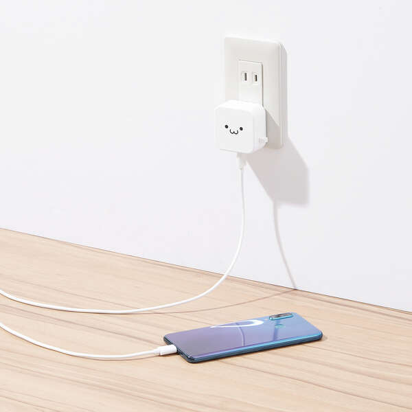 | 商品名 | AC充電器/スマホ・タブレット用/2.4A出力/Type-C/USB-C/ケーブル同梱/1.5m/USB-Aメス1ポート/おまかせ充電搭載/ホワイトフェイス |