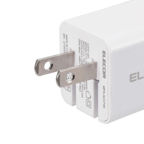 | 商品名 | AC充電器/USB充電器/USB Power Delivery準拠/20W/USB-C2ポート/スイングプラグ/ホワイト |