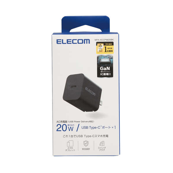 商品名 AC充電器/スマホ・タブレット用/USB Power Delivery/20W/USB-C1ポート/ブラック