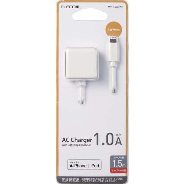 | 商品名 | Lightning-AC充電器/1.0A出力/ケーブル一体/1.5m/ホワイト |