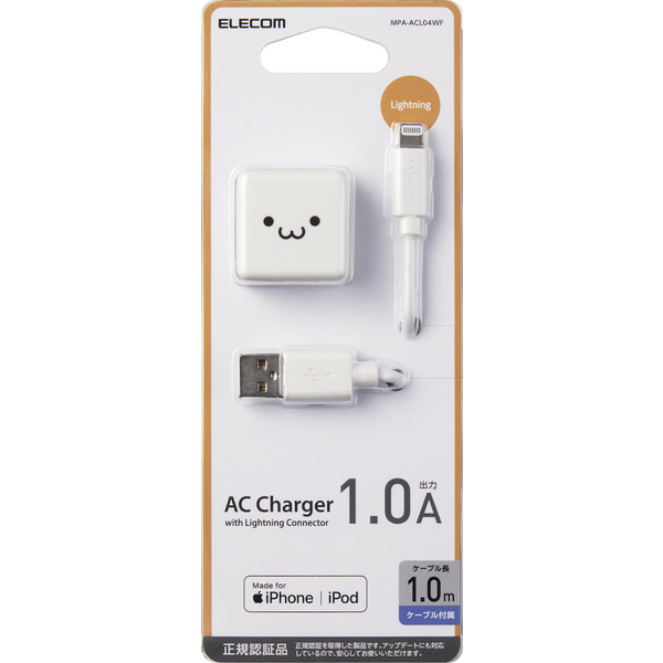 | 商品名 | Lightning-AC充電器/1.0A出力/ケーブル同梱/1.0m/ホワイトフェイス |