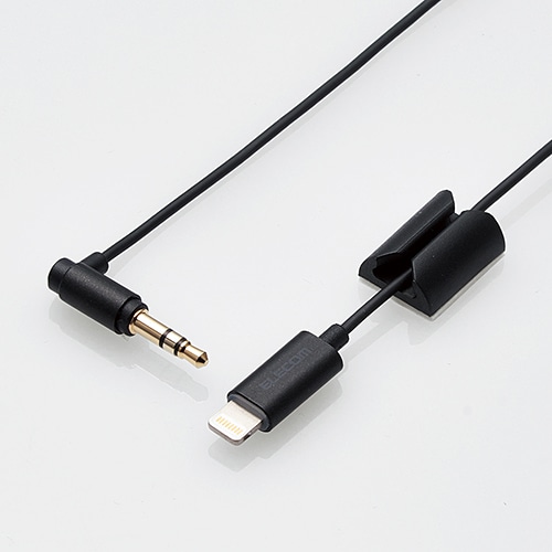 車載用AUXケーブル/Lightning-φ3.5オス(L字)/スリムデザイン/1.0m/ブラック