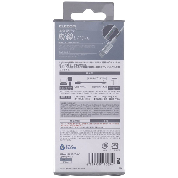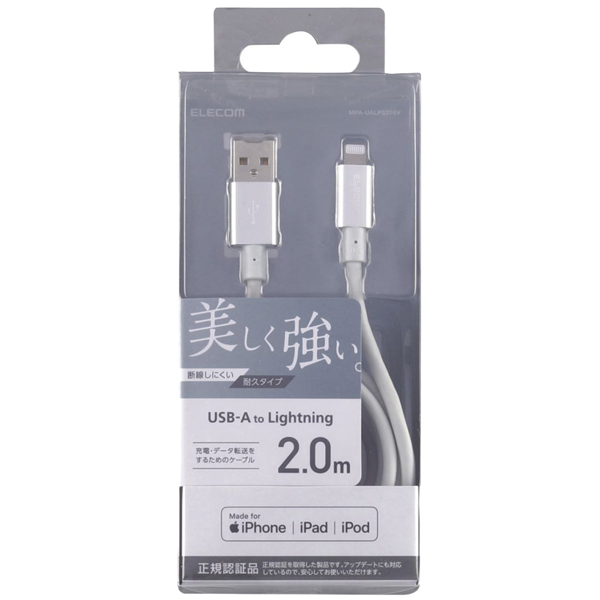 | 商品名 | Lightningケーブル/準高耐久/アルミコネクタ/2.0m/シルバー |