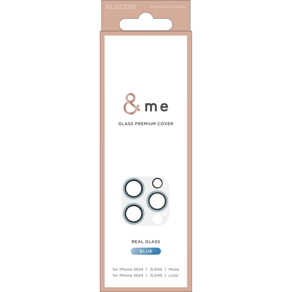 iPhone 16 Pro/iPhone 16 Pro Max用カメラレンズカバー/ガラス/&Me/グリッター仕様/ブルー