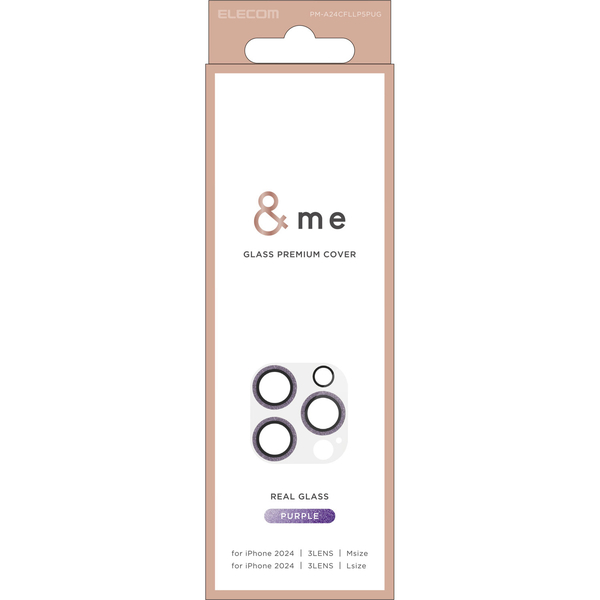 iPhone 16 Pro/iPhone 16 Pro Max用カメラレンズカバー/ガラス/&Me/グリッター仕様/パープル