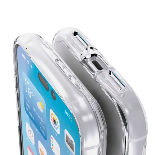 ■全周に配置した独自設計のエアークッションが衝撃を吸収し、側面に弾力性のあるTPU(熱可塑性ポリウレタン)素材を、背面に高硬度のポリカーボネート素材を使用した、端末のデザインが美しく際立つオールクリアタイプのTOUGH SLIM LITEケースです。 ■2種の素材を特殊成型し、強じんな耐久性としなやかな弾力性をあわせ持ったハイブリッドケースです。 ■背面は高硬度5Hの軽くて丈夫なポリカーボネート素材を採用しています。 ■※表面硬度は実力値です。 ■耐衝撃性能を備えながら、薄型・軽量設計を実現しています。 ■ケースと端末の貼り付きを防止するため、ケース内側にマイクロドット加工を施しています。 ■ストラップの取り付けができる、ストラップホールが付いています。 ■※本製品にストラップは付属していません。 ■対応機種:iPhone 17 Pro Max ■セット内容:ケース本体×1、ストラップホールシート(1つ穴・半透明タイプ)×1、メタルステッカー×1 ■材質:ケース本体:TPU(熱可塑性ポリウレタン)・ポリカーボネート、ストラップホールシート:PVC・亜鉛合金、メタルステッカー:鉄 ■カラー:クリア ■ワイヤレス充電器対応:○