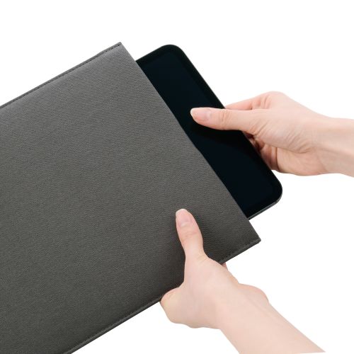 ■薄くて軽いシンプルなデザインのタブレット汎用スリップインケースです。 ■11インチまでのタブレットに対応しています。 ■※本製品はタブレット本体を収納できるよう設計されています。タブレットケースなどを装着した状態では、収納できない場合がありますのでご注意ください。 ■マチのないスリム設計でかばんに入れてもかさばりません。 ■表生地には耐久性とスタイリッシュさを兼ね備えた帆布素材を採用。使うほどに馴染む上品な質感が魅力です。 ■内側には、タブレットを傷つけにくい起毛素材を採用しています。 ■本体の出し入れがしやすいスリップインタイプです。 ■マグネット開閉口で取り出しやすさと落下防止を両立します。 ■エレコム社環境認定基準を1つ以上満たし、『THINK ECOLOGY』マークを表示した製品です。 ■環境保全に取り組み、製品の包装容器が紙・ダンボール・ポリ袋のみで構成されている製品です。 ■外形寸法:幅約222mm×奥行約7mm×高さ約295mm ■参考収納寸法:幅約190mm×奥行約15mm×高さ約250mm ■対応機種:~11インチまでのタブレット ■カラー:ブラック ■材質:表地:綿(帆布)、裏地:ポリエステル ■重量:約140g