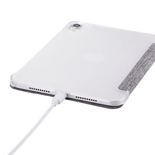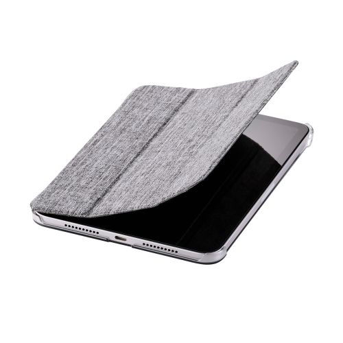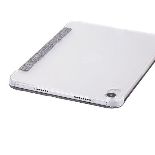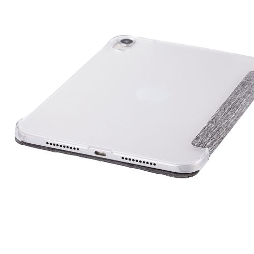 8.3インチiPad mini(A17 Pro)/フラップケース/薄型軽量/ファブリック/背面クリア/2アングル/グレー