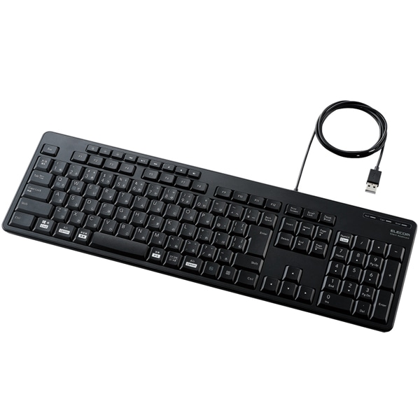 ■音が気になる場所や時間帯での使用に最適な有線タイプの静音フルキーボードです。数字入力に便利なテンキー付きのフルキーボードで、エクセルなどの作業を効率化します。 ■インターフェース:USB ■コネクター形状:USB-Aオス ■対応機種:USBポートを装備したWindows、macOS、Chrome OS搭載機 ■対応OS(Windows):Windows 11/10/8.1 ■対応OS(macOS):macOS Big Sur 11 ■対応OS(その他):ChromeOS ■対応OS 備考:※各OSの最新バージョンへのアップデートや、サービスパックのインストールが必要になる場合があります。 ※最新情報は対応表をご確認ください。 ■カラー:ブラック ■キータイプ:メンブレン ■キー配列:109キー+9キー(日本語配列) ■キーピッチ:19mm ■キーストローク:2mm ■ホットキー数:9キー ■電源方式:USBバスパワー ■ケーブル長:1.5m ■外形寸法:幅442.8mm×奥行139.8mm×高さ26.8mm(スタンド含まず)、幅442.8mm×奥行139.8mm×高さ35.3mm(スタンド時) ■サイズ分類:フルサイズ ■質量:約450g ※ケーブル含む ■VCCI Class B:○ ■保証期間:1年間