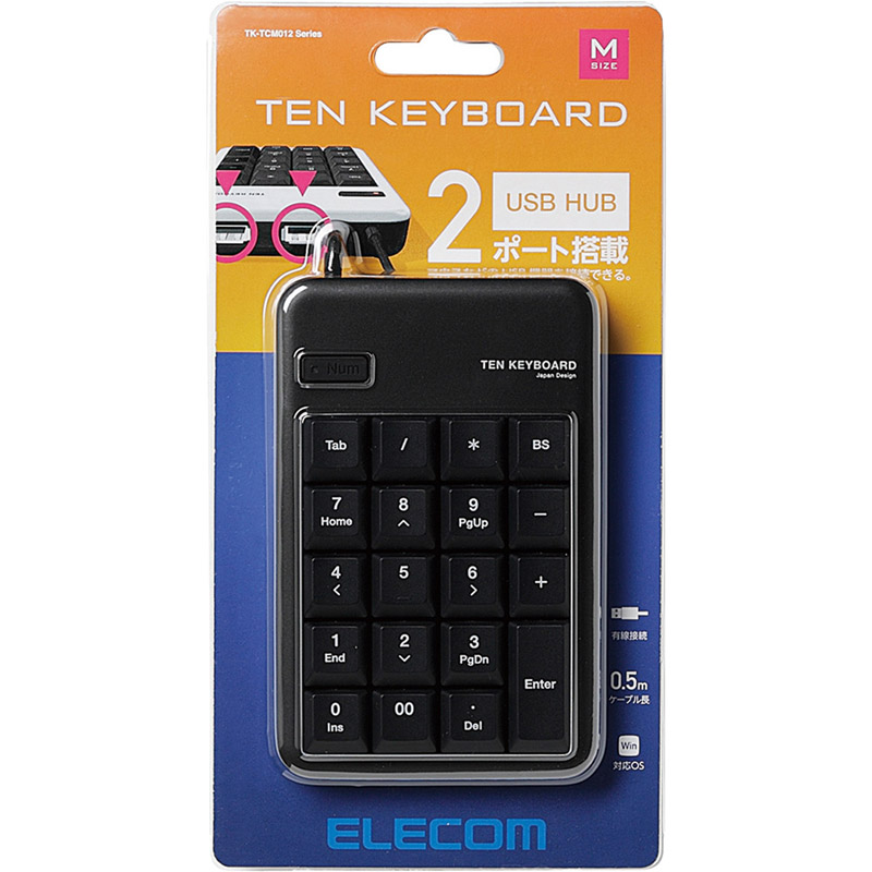 2ポートUSB2.0ハブ付テンキーボード/Mサイズ/メンブレン/ブラック