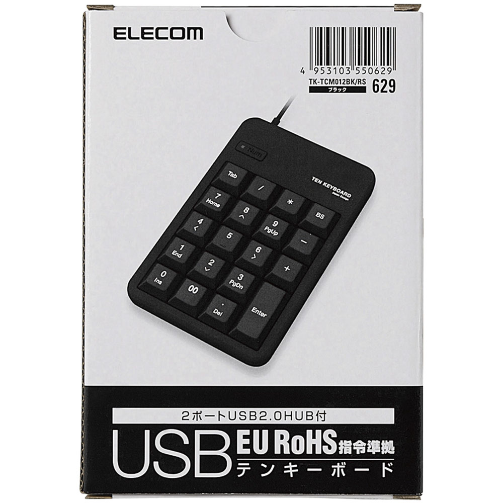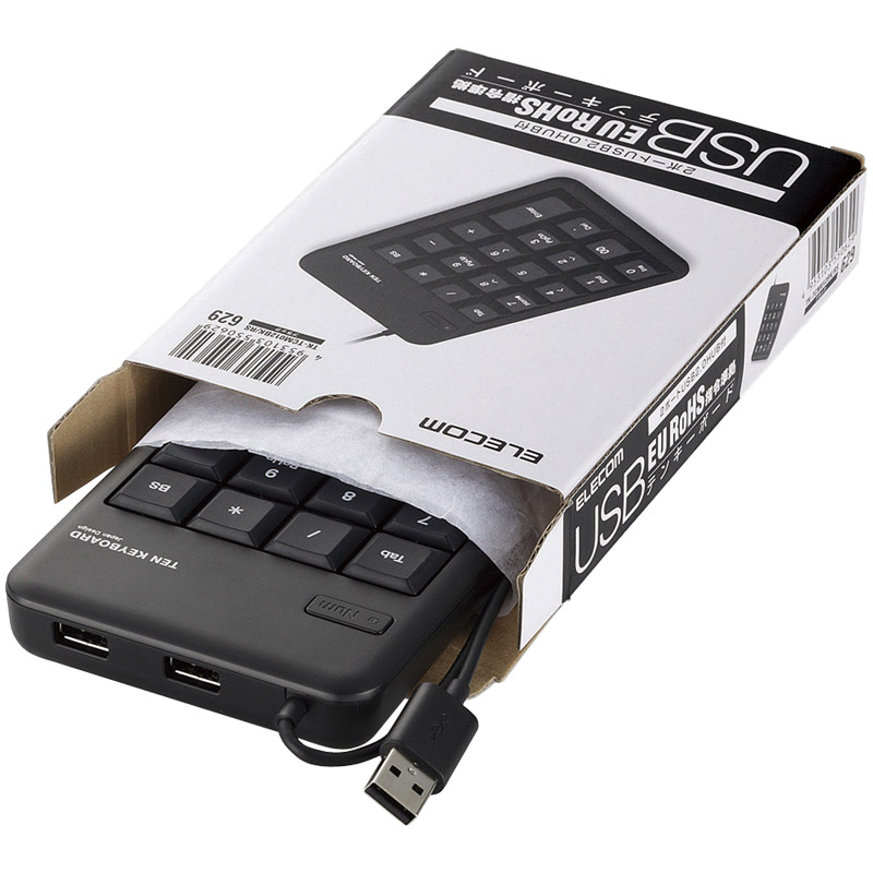 商品名 2ポートUSB2.0ハブ付テンキーボード/メンブレン/ブラック/RoHS指令準拠