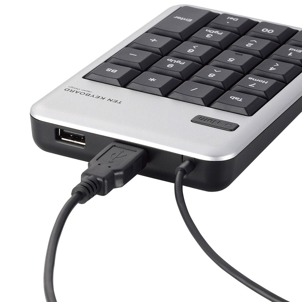 2ポートUSB2.0ハブ付テンキーボード/Mサイズ/メンブレン/シルバー