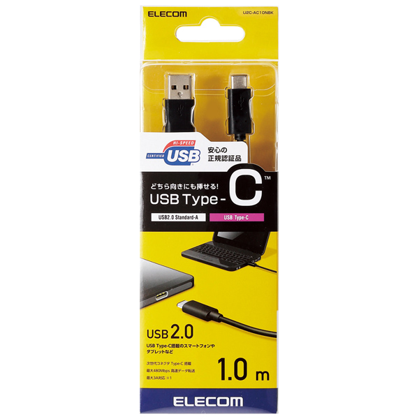 | 商品名 | USB2.0ケーブル/A-Cタイプ/認証品/1.0m/ブラック |