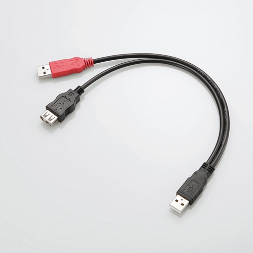 ■USB2.0(Standard-A)端子搭載のパソコン及びUSB2.0端子搭載のパソコン周辺機器を接続できるUSB2.0ケーブルです。 ■通常のUSB2.0ケーブルに給電用ケーブルがついた、「ダブル給電タイプ」です。 ■USBバスパワーで動作するポータブルHDDやDVDドライブの電力不足を解消するケーブルです。 ■逆流防止のダイオード及び過電流を防止する保護素子を搭載した安心設計です。 ■コネクタ形状:USB2.0(Standard-A)オス×2-USB2.0(Standard-A)メス×1 ■長さ:全長約0.6m:USB2.0[Standard-A]メス(黒)~USB2.0[Standard-A]オス(黒)約0.3m/USB2.0[Standard-A]オス[黒]-USB2.0[Standard-A]オス(赤)約0.3m ■カラー:ブラック ■対応機種:USB2.0(Standard-A)端子搭載のパソコン及びUSB2.0端子搭載のパソコン周辺機器 ■使用目的・用途:USB2.0規格適合のHDD/DVDドライブ接続用