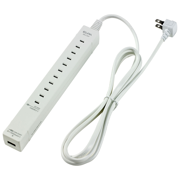 スリムタップ 5個口 1.5m USBポート付 ホワイト