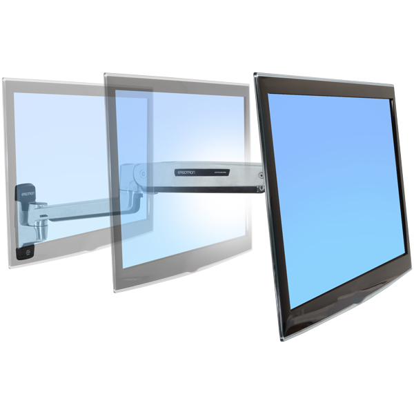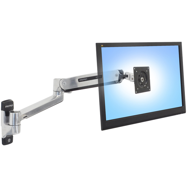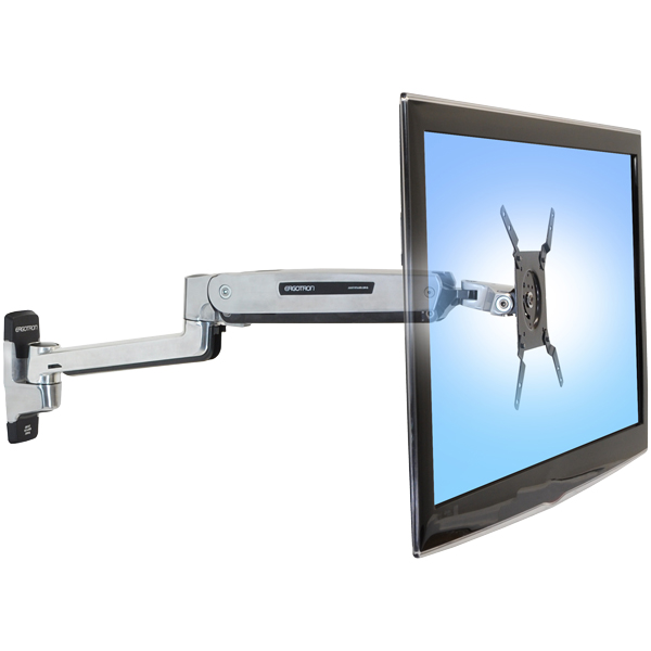 LX座位・立位ウォールマウントLCDアーム この汎用性に優れたアームは、座位・立位ワークステーション内で小型モニターを使用したり、デジタルサイネージ用に最大11.3kgの大型ディスプレイを取り付けるなど、さまざまな用途に利用できます。LXは上下51cm、左右157cmの広範な可動域を備えており、座位と立位のスムーズな移行が可能です。