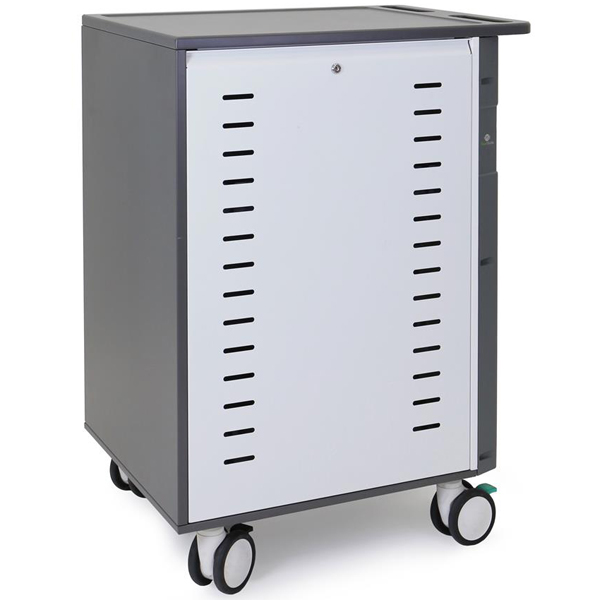 Zip40充電カートは、最大40台のデバイスの移動、保管、充電を1台でこなす多機能な充電カートです。仕切り板は調整可能で、タブレット、Chromebooks、Ultrabooks、MacBooksノートパソコンに対応します。PowerShuttle テクノロジーは、電気回路の過負荷を防ぎながらデバイスを素早く充電します。丈夫で安全な構造、組み立て不要です。