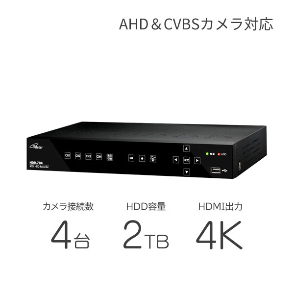 | 商品名 | ハードディスクレコーダー(映像・音声4入力、AHD3.0、2TB) |