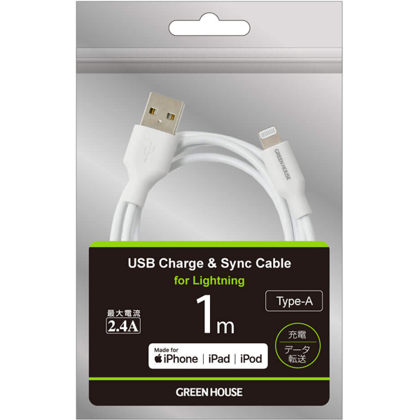 | 商品名 | Lightning to USB Type-A 充電・データ転送ケーブル 100cm ホワイト MFi認証取得 |