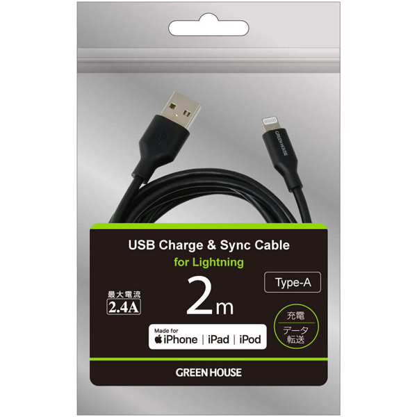 | 商品名 | Lightning to USB Type-A 充電・データ転送ケーブル 200cm ブラック MFi認証取得 |