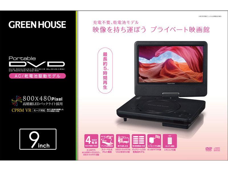 | 商品名 | 9型ワイド ポータブルDVDプレーヤー 乾電池 ブラック |