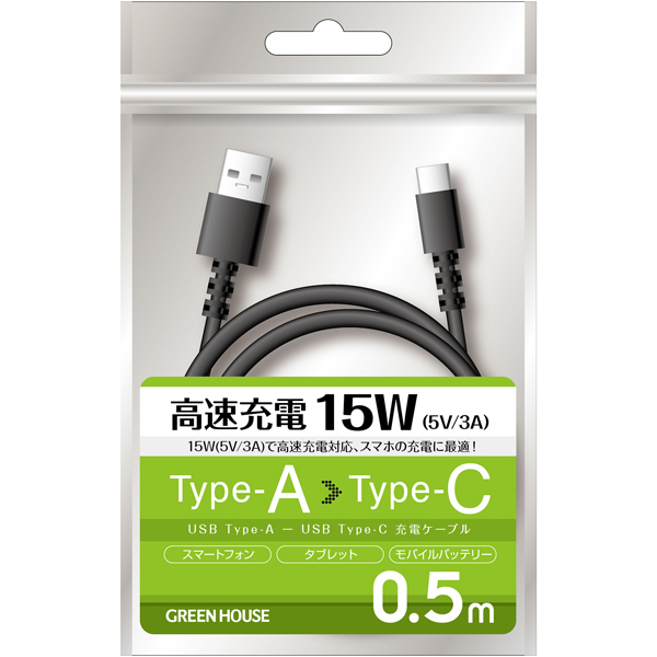 | 商品名 | USB Type-A - USB Type-C 充電/データ転送ケーブル 0.5m ブラック |